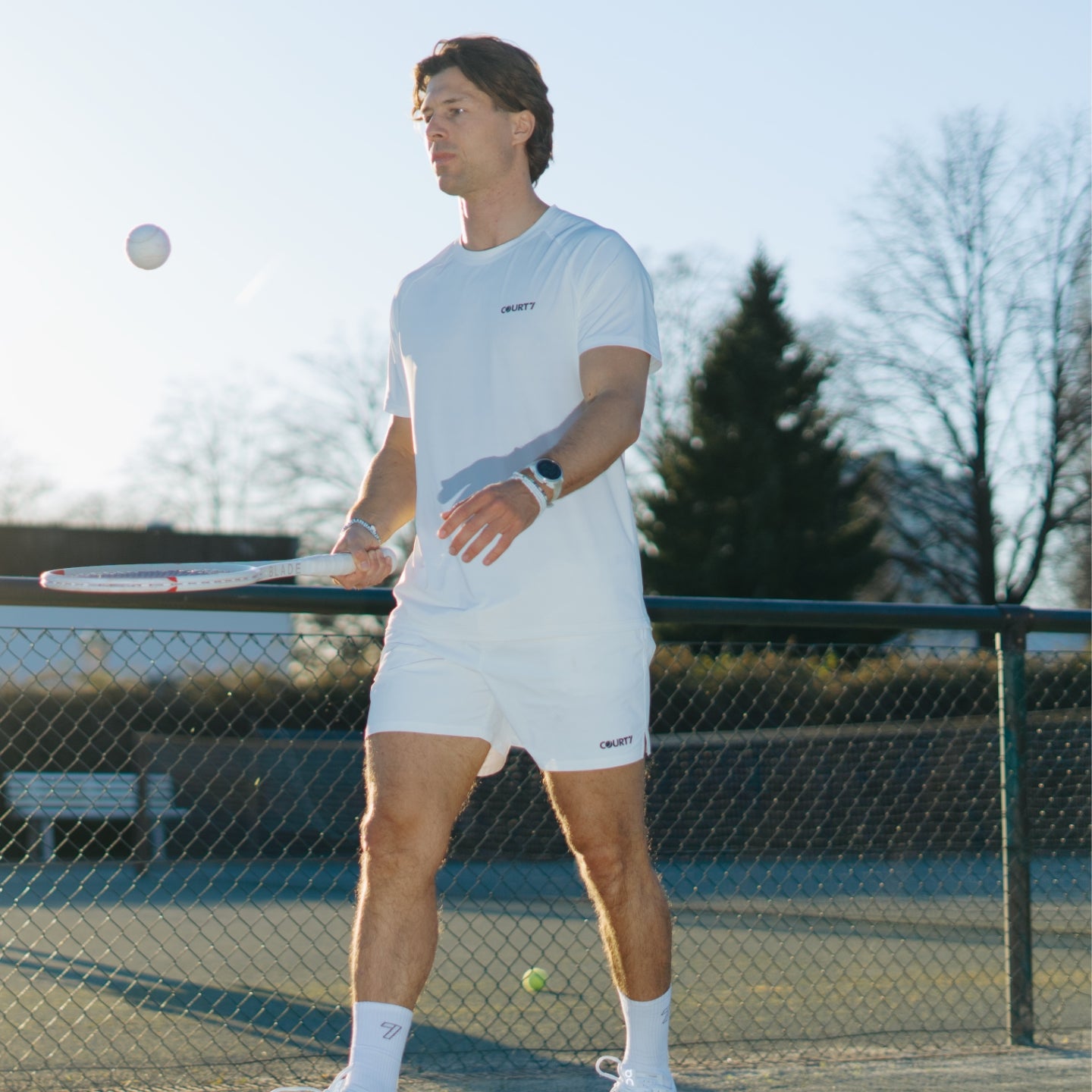 Die Shorts für Match, Warm-Up und die Zeit danach. Dual Pocket 5" Shorts in Off-White mit aktiver Kühlung und Geruchskontrolle — klassisch kurze Tennis-Shorts mit versteckter Reißverschlusstasche für kleine Wertsachen.